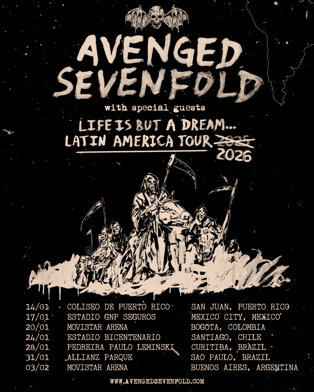 Latin America — We are thrilled to announce our new dates for January and February 2026. We can’t wait to return early next year to play these shows for you. Thank you for all of your patience and understanding. We are stoked to have Mr. Bungle join us in Chile, and in Mexico we have A Day To Remember, Daron Malakian and Scars On Broadway, and Mr. Bungle.